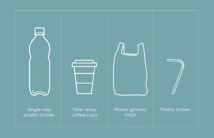 Commit to one month of avoiding single-use plastic. Start small by picking one item on the list below and switch to reusable bottles for a month, or challenge yourself and inspire others by avoiding the ‘big four’!