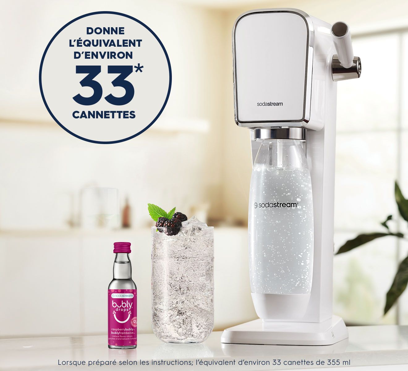 NOUVEAU! bubly drops : parfaites pour agrémenter votre eau pétillante d'une touche de framboise! Préparez votre saveur préférée d'eau pétillante bubly à la maison avec SodaStream. Zéro calorie. Zéro édulcorant. Tout sourire.