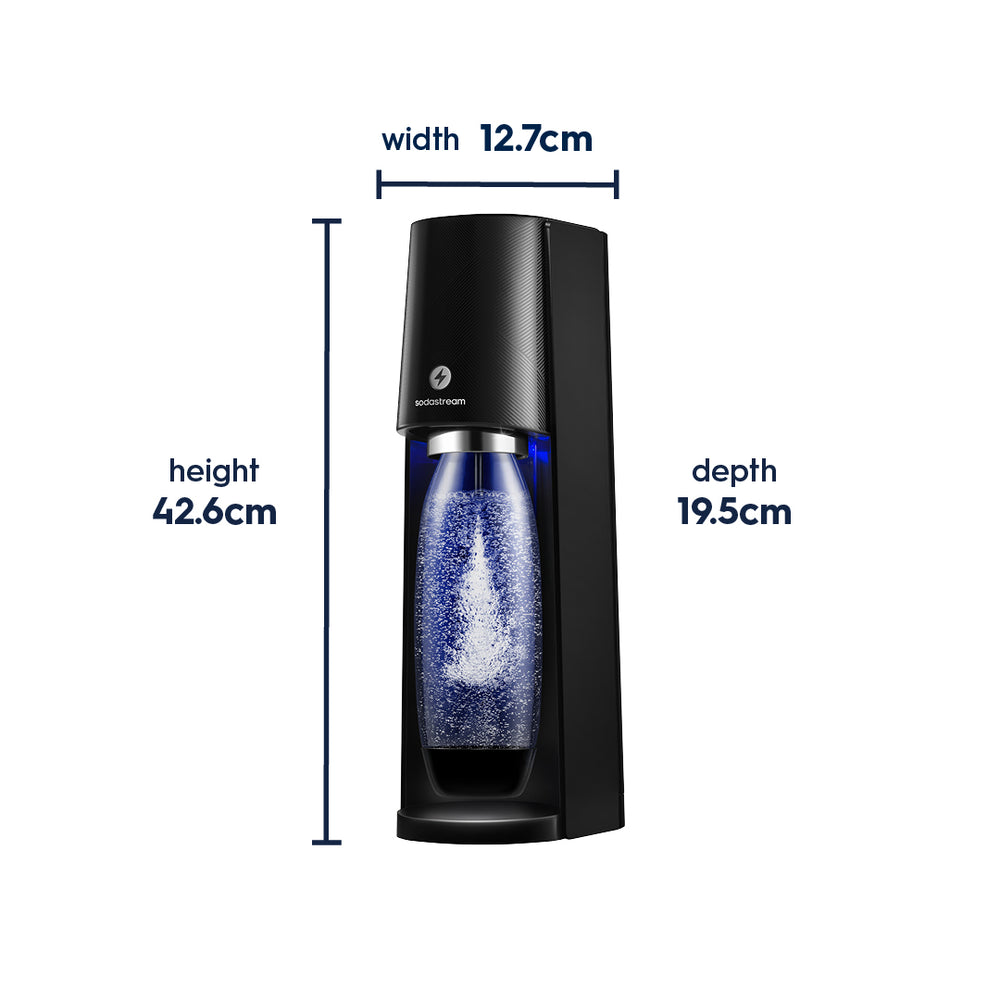 Powered fizz control – choose light, medium, or bold bubbles with three pre-set carbonation levels.