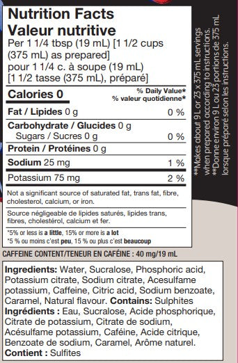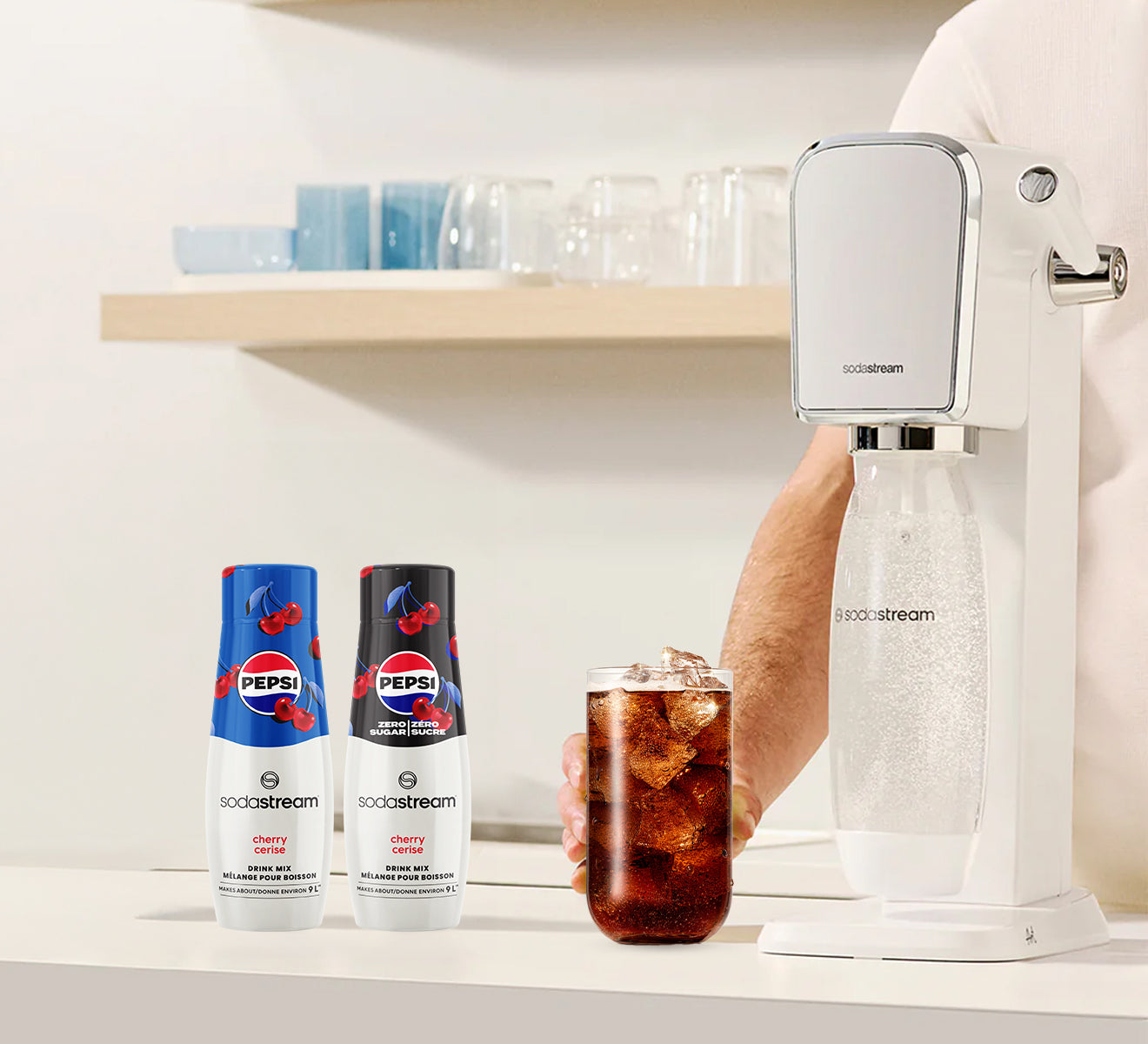 NEW! Made exclusively for SodaStream®, our Pepsi® Cherry Zero Sugar drink mix makes it easy to enjoy your favourite cola with the thrilling burst of cherry flavour any time! Turn sparkling water into a drink for every occasion— simply add this sugar free, zero calorie Pepsi® Cherry drink mix to fresh sparkling water for a personalized flavour experience.