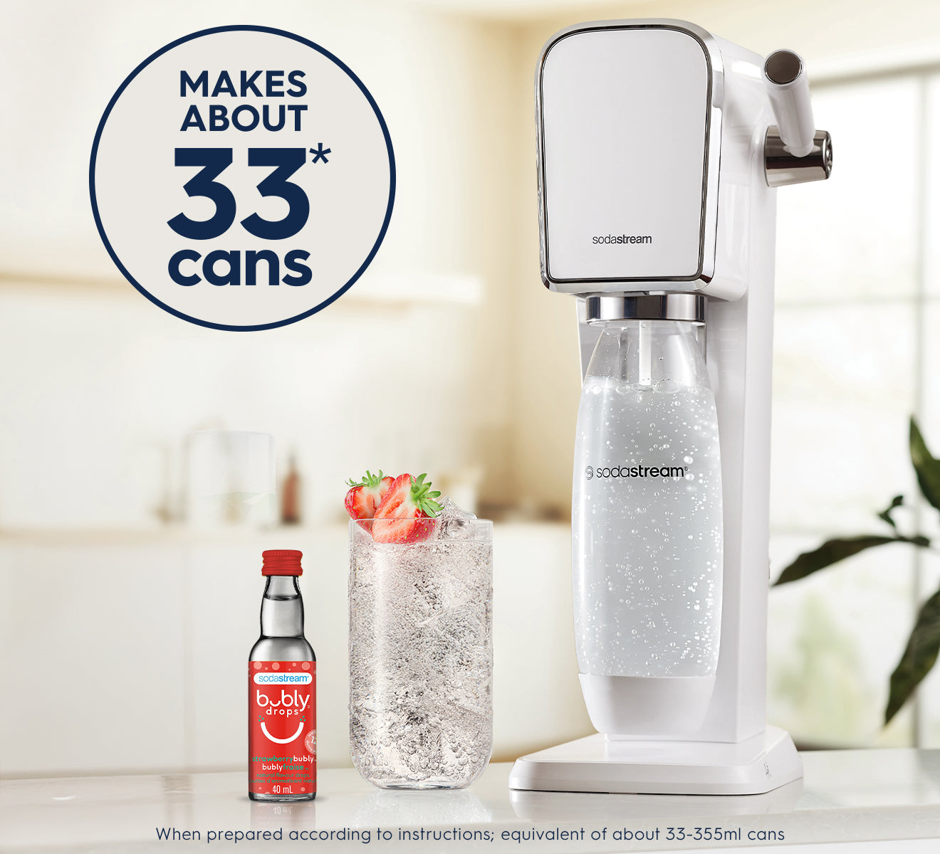 NEW! bubly drops™ - a fun way to sparkle your water with strawberry flavour! Make your favourite bubly ™ sparkling water right at home with SodaStream. no calories. no sweeteners. all smiles.™